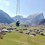 The spacious HAuSblick Apartment Au offers views of the garden and a location about 1 km from Grunholz. Guests can relax and take in mountain views from a terrace of this apartment.